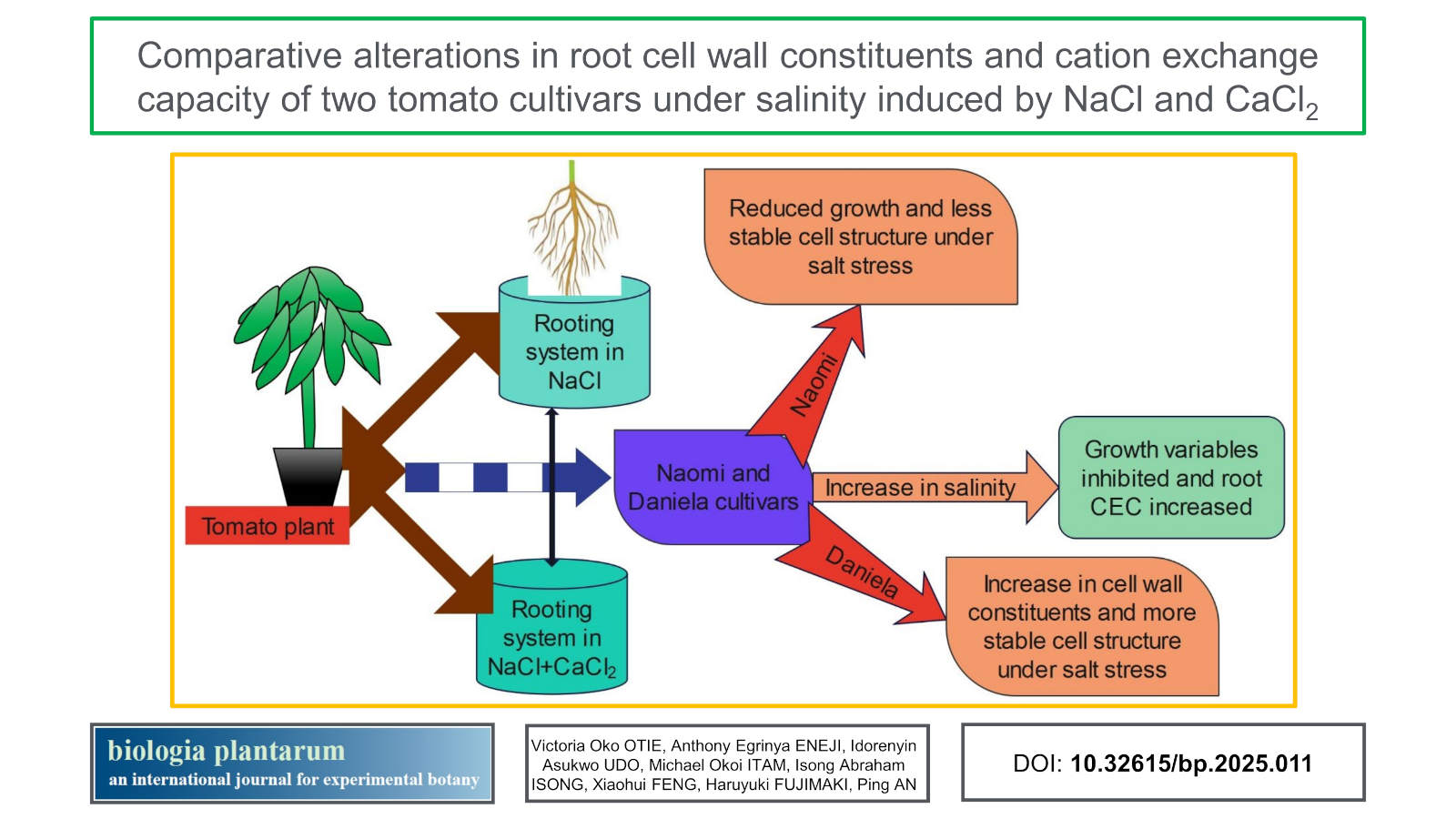 Aims: Here, we determined the CW composition and cation-exchange capacity (CEC) of two tomato cultivars (Daniela, salt-tolerant and Naomi, salt-sensitive) as well as their growth and root characteristics.